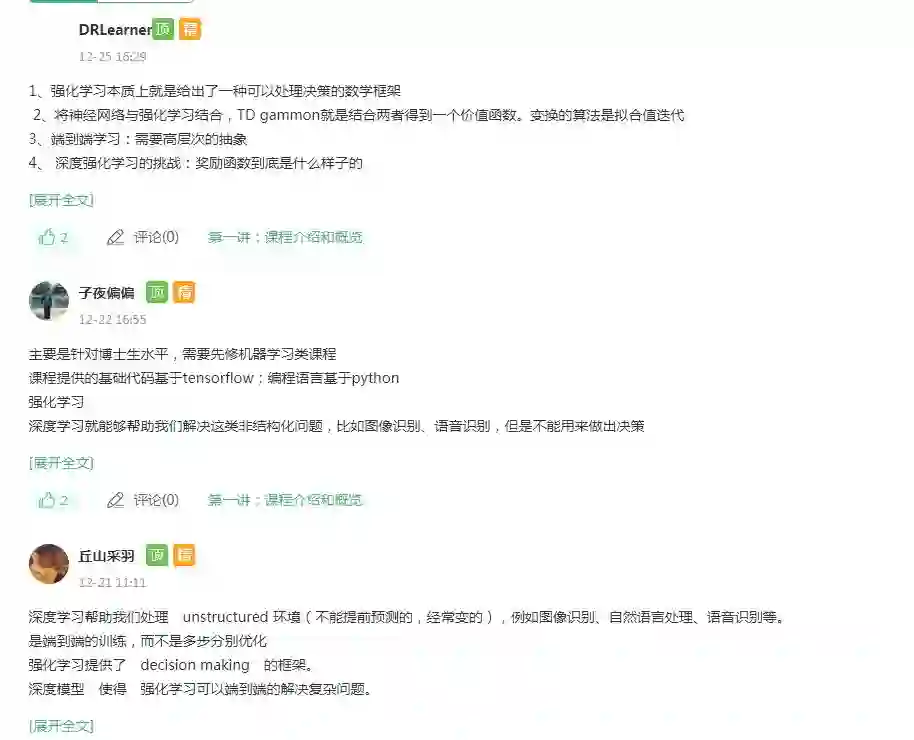这门课是基本覆盖了强化学习的主要内容和前沿的研究话题,通过理论到应用例子的讲述,以及五次作业(实际上是七次)的实践练习对经典算法的复现,可以让学生达到在强化学习领域的入门研究水平。重点是免费!课程有中文字幕!有作业参考!不过这门课并不是零门槛,需要上过机器学习课程,最好是还上过深度学习(比如cmu deeplearning),最最好用过tensorflow(因为作业的官方基础代码只有tensorflow版本)。