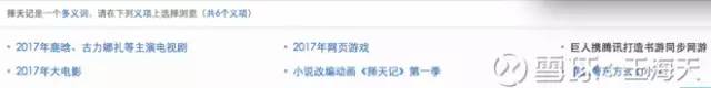 而知识产权的从头到尾开发能力,将会是网络文学公司的重要竞争力。这是《择天记》百科中的六个义项。从小说到电视剧、网游、电影、动画全产业链通吃。