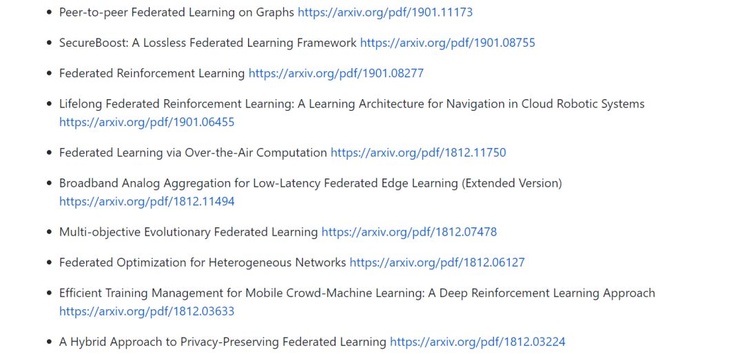 【导读】 联邦学习(Federated Learning)是一种新兴的人工智能基础技术,在 2016 年由谷歌最先提出,原本用于解决安卓手机终端用户在本地更新模型的问题,其设计目标是在保障大数据交换时的信息安全、保护终端数据和个人数据隐私、保证合法合规的前提下,在多参与方或多计算结点之间开展高效率的机器学习。其中,联邦学习可使用的机器学习算法不局限于神经网络,还包括随机森林等重要算法。联邦学习有望成为下一代人工智能协同算法和协作网络的基础awesome