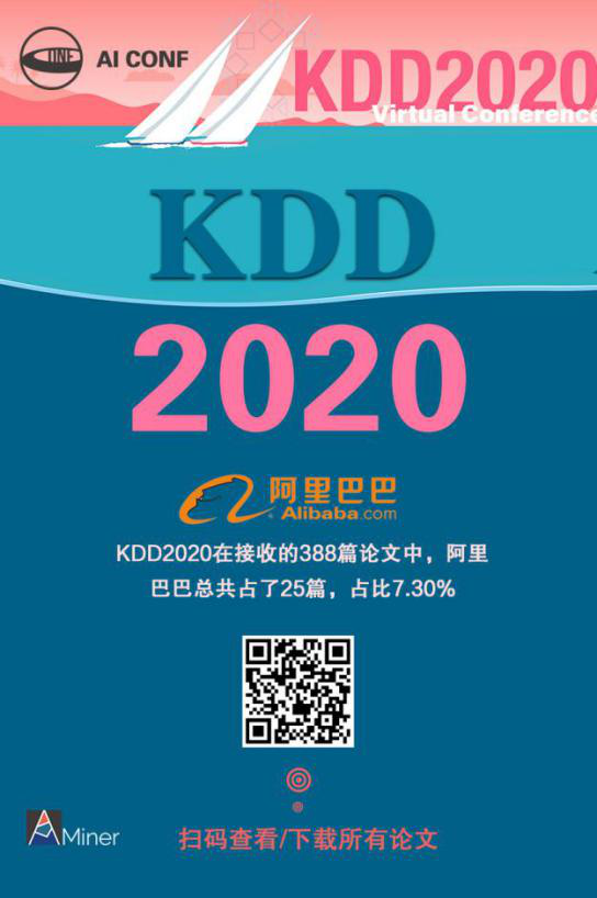 KDD2020 中,阿里巴巴发表论文数 25,占比 7.3%。