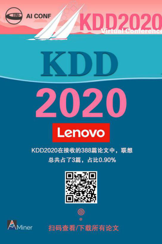 KDD2020 中,联想发表论文数 3,占比 0.9%
