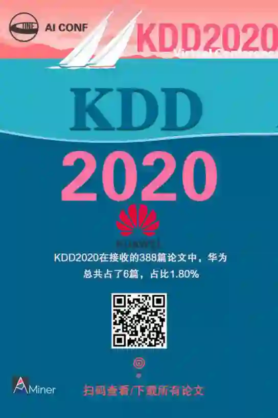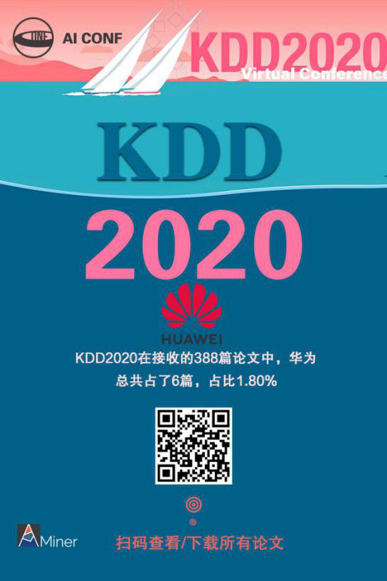 KDD2020 中,华为发表论文数 6,占比 1.8%
