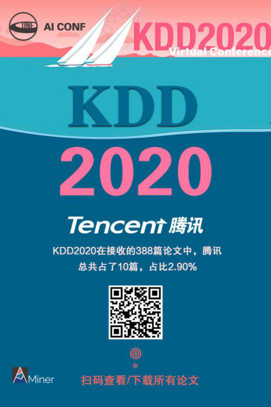 KDD2020 中,腾讯发表论文数 10,占比 2.9%