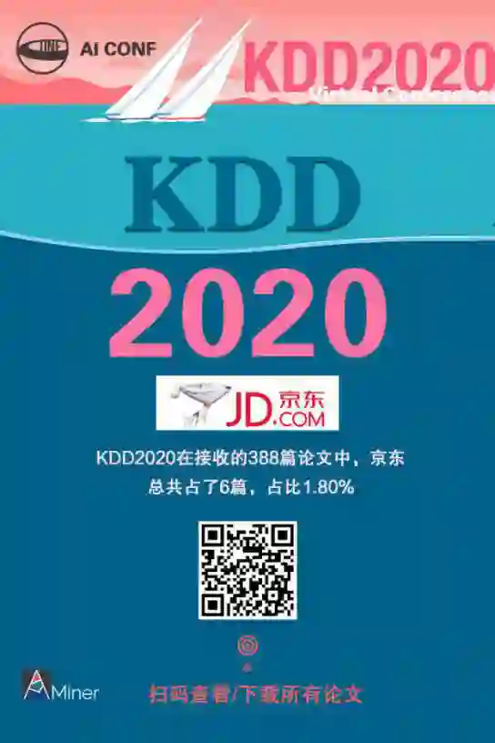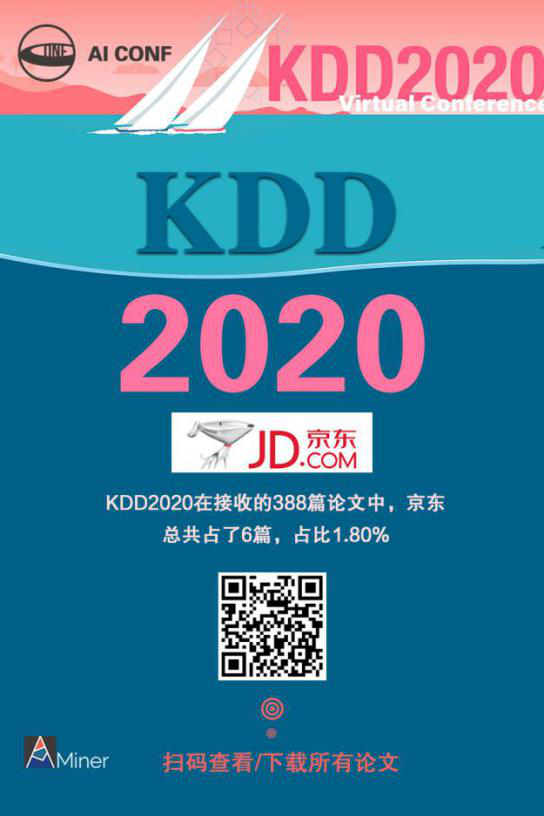 KDD2020 中,京东发表论文数 6,占比 1.8%