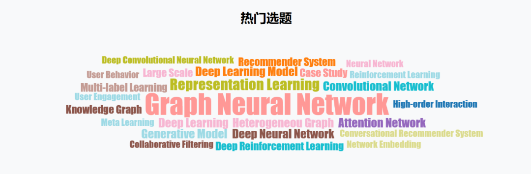 同时,通过对 AMiner 平台中 KDD 2020 收录论文数据的挖掘,从词云可以看出,KDD 2020 的关键词主要集中在 Graph Neural Network、Representation Learning、Deep Learning Heterogeneou Graph、Attention Network、Knowledge Graph、Convolutional Network 等方向。