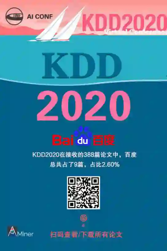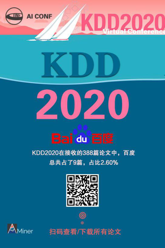 KDD2020 中,百度发表论文数 9,占比 2.6%