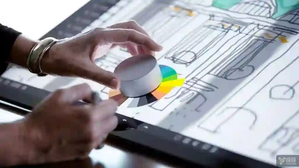 将人体工程学运用到 Windows 设备上,微软可以更自由地尝试新输入机制。微软在去年年底推出的 28 英寸一体机 Surface Studio 就是最有力证明。为此,微软还推出了一款新颖的配件:Surface Dial。这是一个高科技的旋转按钮,可以配合电脑屏幕使用,也可以像操控鼠标一样使用它。通过它可以完成一些不同寻常却很直观的操作,比如缩放和旋转地图选项或者改变画笔的颜色。