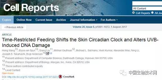 Joseph S. Takahashi说,尽管还需要进一步的研究,但这项发现表明,在夜间太晚进食的人对日光照射的长期影响更加脆弱,比如皮肤老化和皮肤癌。