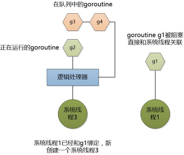 “简单,就让这个goroutine和逻辑处理器解脱关联,直接和系统线程绑定,等到读写文件完成以后,在回到某个逻辑处理器的队列去。”