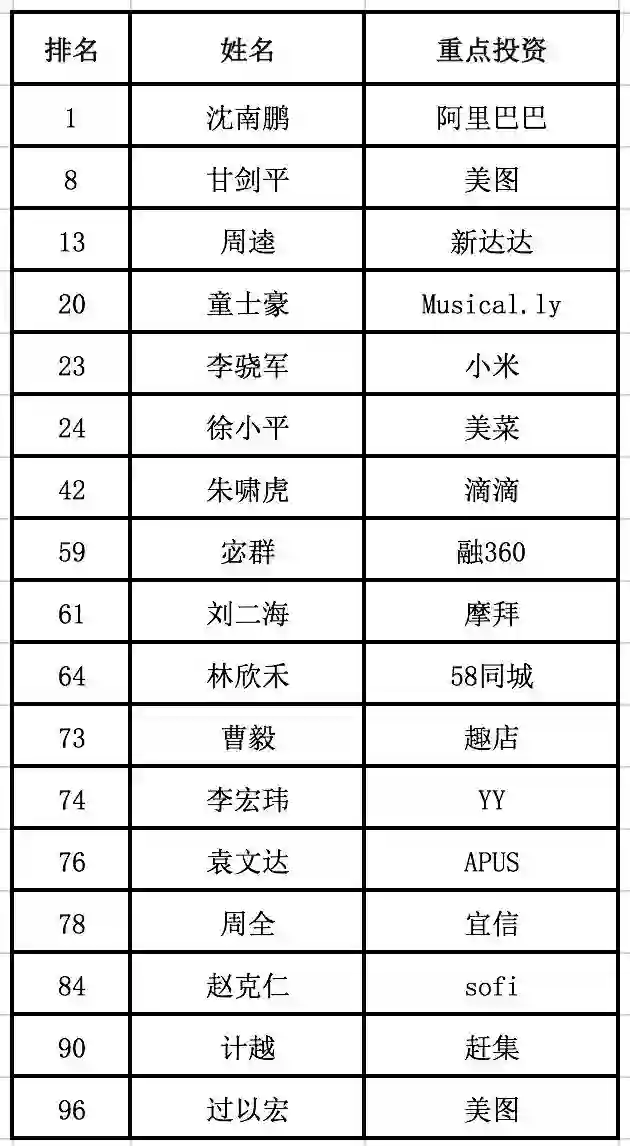除此之外,越来越多的出海企业在海外影响力的增强也是让中国投资人愈加显眼的重要因素。GGV管理合伙人童士豪从2013年进入榜单后连续出现,其项目重要投资小米、wish、musical.ly都是近年在印度、欧美等地有相当大影响力的企业。