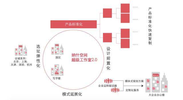 截止目前纳什空间运营面积约 70 万方,入驻企业超过 7000 家,累计服务企业超过 10000 家,其中 80% 的企业入驻在纳什空间的超级工作室中。 70 万方是什么概念?优客工场布局刚刚达到 100 个,运营面积超过 30 万方,会员数超过 5 万人;联合办公鼻祖 wework 6 年时间实现运营面积 55 万方,全球拥有 15 万会员。