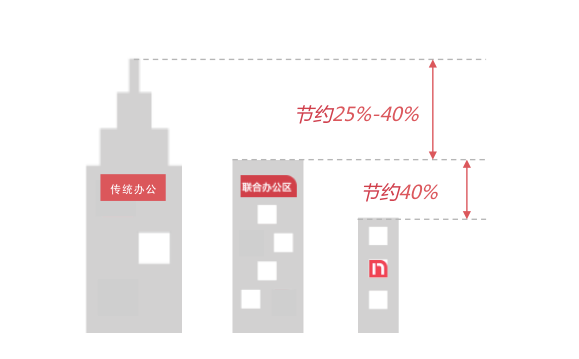 「高产品性价比」延续了拎包入驻,在设计、施工、采购等方面时间成本和费用支出的节约,根据克而瑞调研,使用联合办公空间的企业在成本上相较传统办公节约 25%-40% ;超级工作室,则在联合办公空间基础上更加经济,从超级工作室 1.0 产品的测算来看,基本能实现同区域联合办公价格的 60% ,而节约的部分,是考虑到一些企业,对联合办公里 30% 的公共区域依赖,实际并不是那么高。