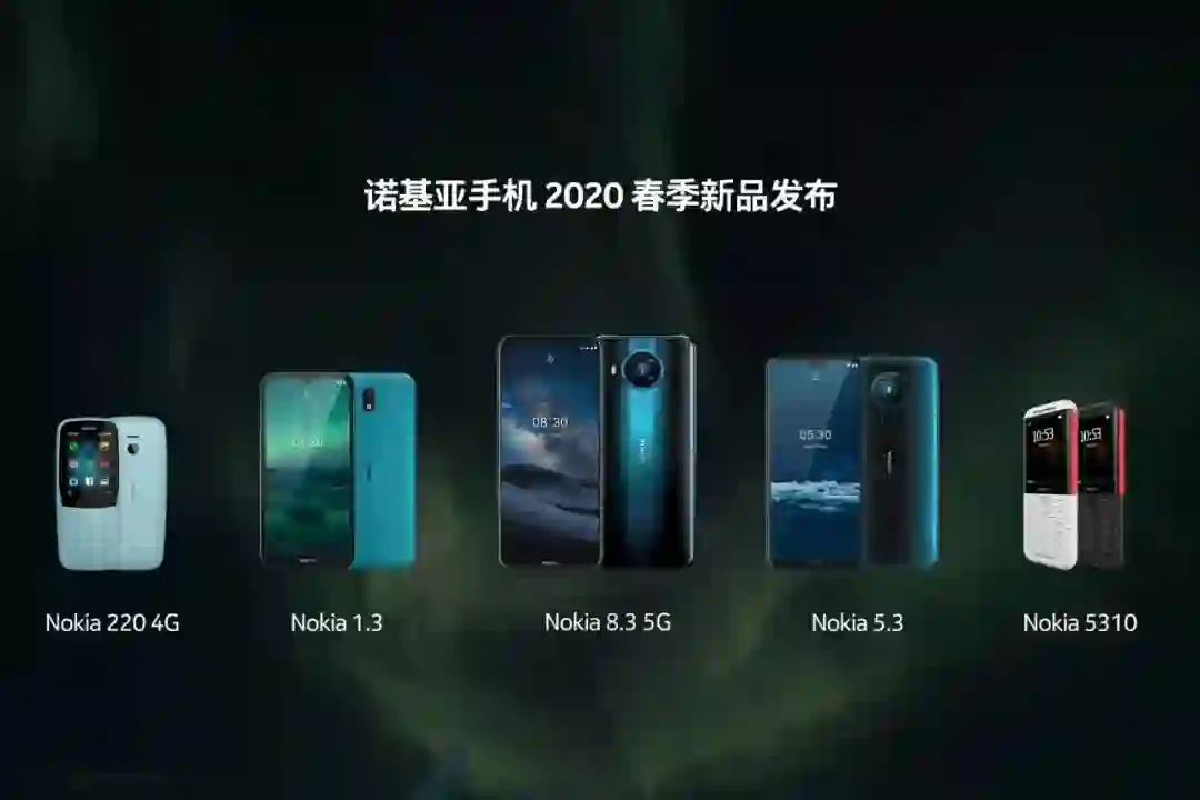 36 氪获悉,北京时间 3 月 20 日凌晨,诺基亚手机母公司 HMD宣布推出四款全新手机:首款 5G 智能手机 Nokia 8.3 5G、经典款 Nokia 5310、大屏实用的 Nokia 5.3 、Nokia 1.3,同时推出全球数据漫游服务 HMD Connect ,以及面向中国消费者推出的 4G 功能手机 Nokia 220 4G,并与第 25 部邦德电影《007:无暇赴死》开展合作。