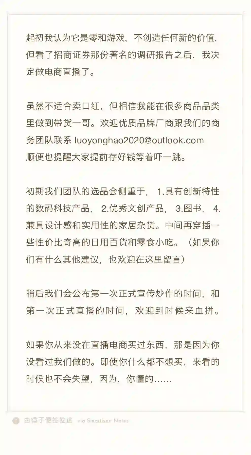 罗永浩称,“虽然我不适合卖口红,但相信能在很多商品的品类里做到带货一哥。”