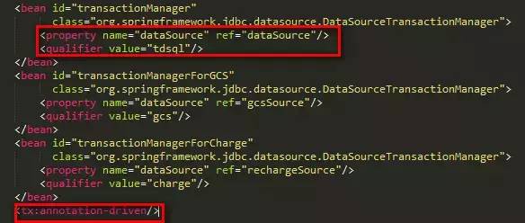 对于多个数据源,当然,我们需要定义多个事务管理器,同时也得开启事务注解。