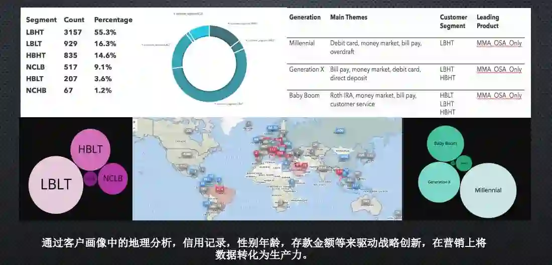 整合海量客户信息,得出客户和客户行为的故事,改进产品开发和营销的战略方法,银行需要从不同的角度去了解他们的客户体验。不仅仅是不同年龄阶层,还有不同交易金额和账户余额的用户,使用安卓系统和苹果系统进行理财的客户,以及现有的和潜在的客户群体,并将客户体验运用到商业决策中。