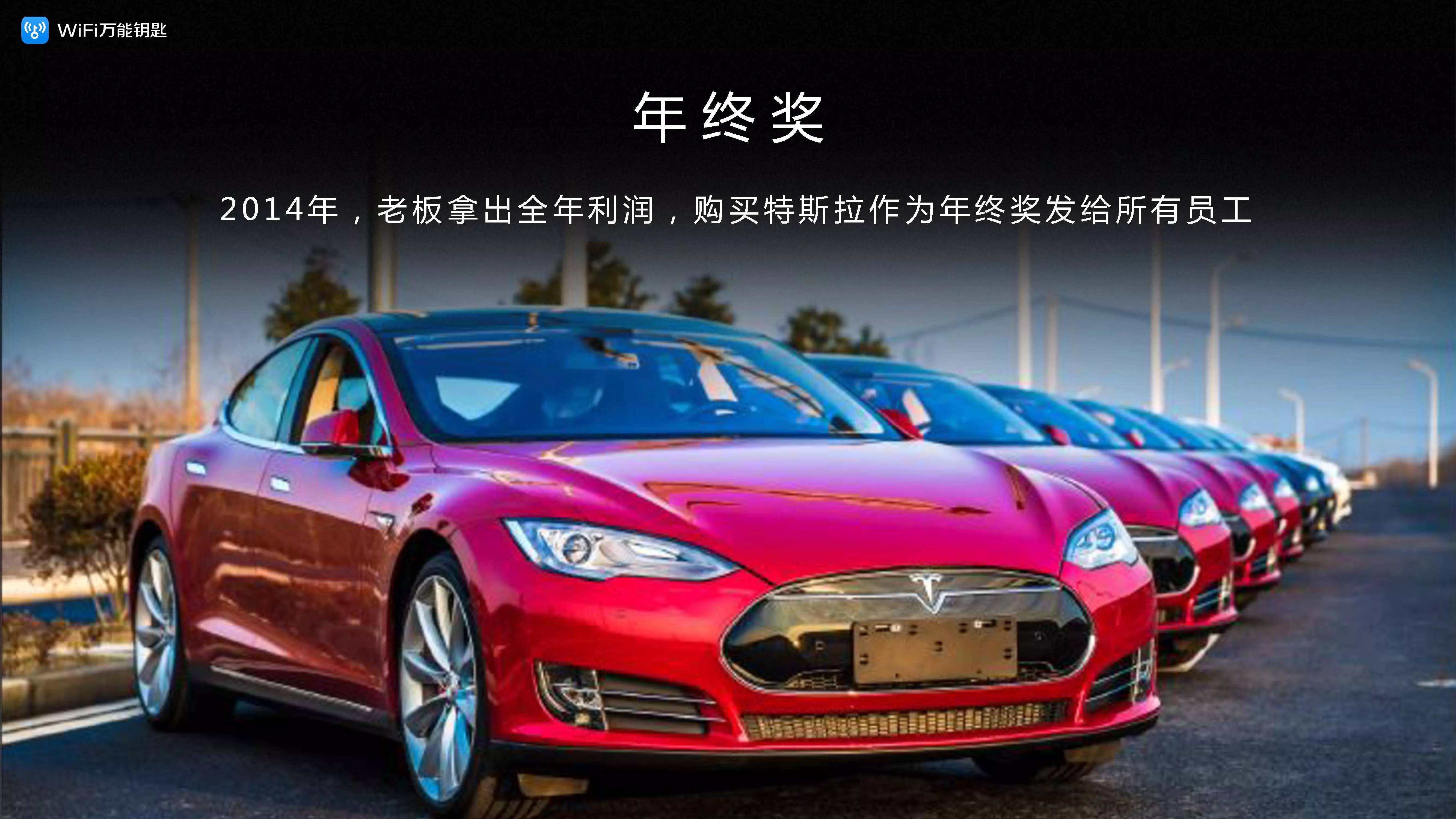 公司经过了2013、2014年的发展,在2014年底,积累了一些利润,并全部分给了员工。因为大家都是为了同一个梦想聚集在一起,而且这些利润是大家共同创造的,所以老板就决定把一年全部的利润分给大家。在2014年的时候当时公司所有的人员只有四十几个人,现在我们是四百多人,再让老板每个人发一个特斯拉,他可能要思考思考。当时我们四十几个人确实是每个人都可以独挡一面的。但现在公司越来越大,有些人不再能够独挡一面,我对整个团队的要求是“兵不在多而在精”。但在这个过程中,要有各种各样的方法去甄别出不符合公司文化和团队氛围的人,然后直接开掉,因为这种人消极的态度会影响团队的其他人。