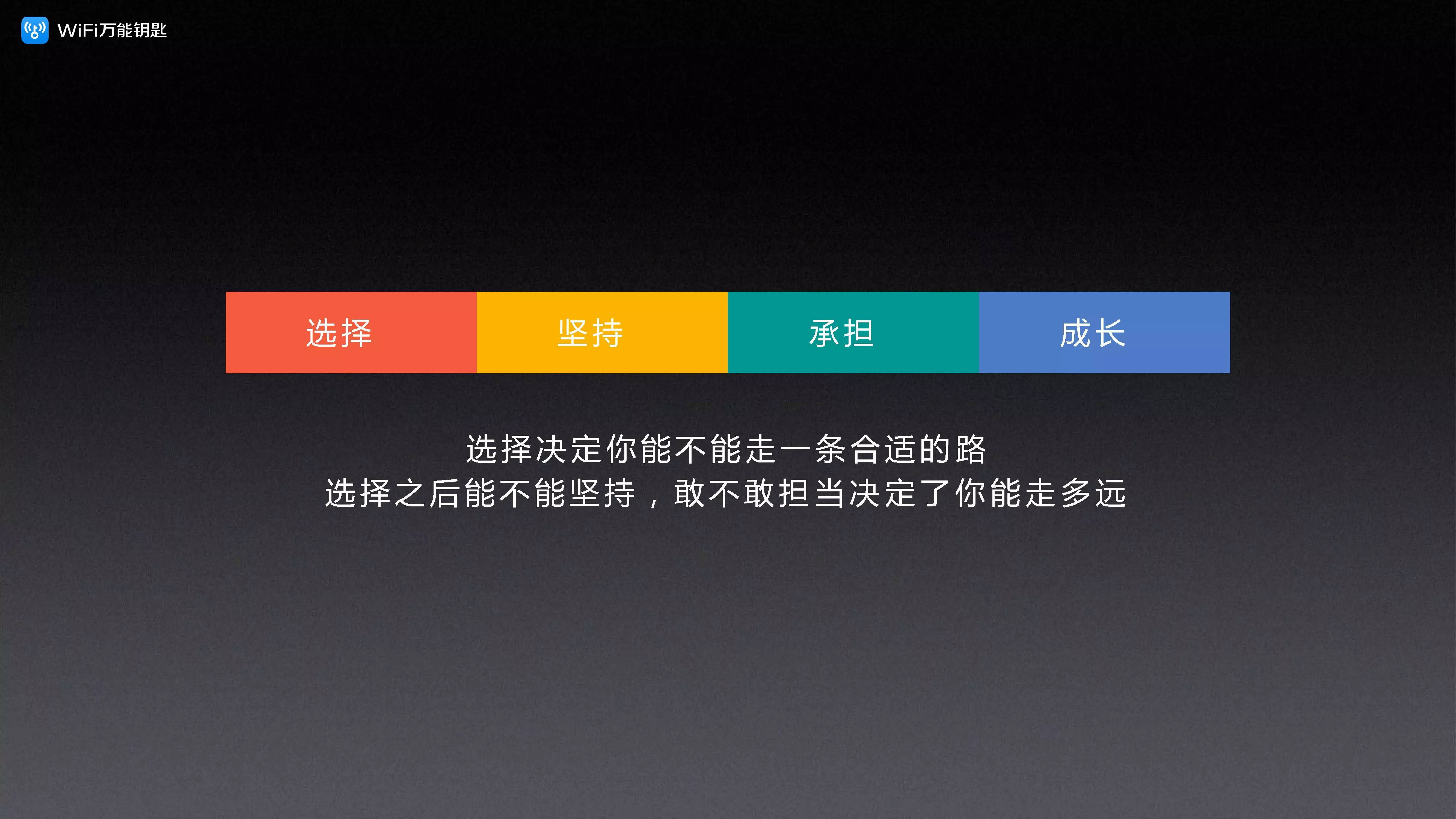 很荣幸来到这里与大家进行交流,我想分享的内容是我加入WiFi万能钥匙后见证的整个公司的发展和自己的一些经历和体会。