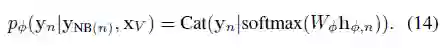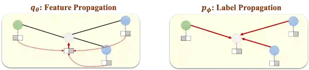 受摊还推断(amortized inference)的启发,同样使用一个GNN来参数化结点标签的后验分布,该GNN能够学习到有利于标签预测的结点的表示。