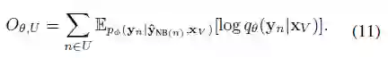 这样就能够对结点标签之间的依赖性进行建模,并且不需要手动构建势函数。目标函数如下:
