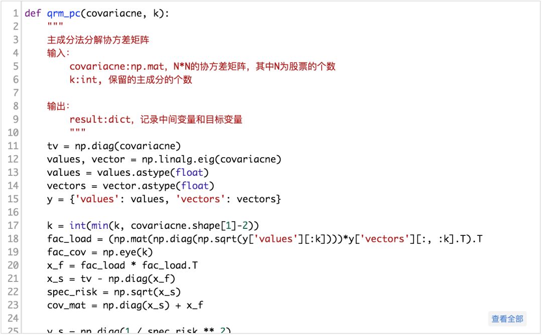 关于统计风险模型的原理在前面的文章已经做初步的说明。此处不再赘述,这次把对协方差矩阵进行分解的代码一并提供,也算是一个小小的福利吧。其实对于压缩估计,经常使用优矿的矿友一定不会陌生,此前占据社区头条一年多的热帖MultiFactors Alpha Model - 基于因子IC的多因子合成里面就介绍了这种方法。不过该文是对IC的协方差矩阵进行压缩,意义不大(在因子数量不多的情况下,我们能够直接把这个协方差矩阵算出来并保证其性质良好)。本文将这种方法应用于股票收益率的协方差矩阵上。(文章可在优矿社区获取)