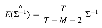 从统计的角度来说,样本协方差的估计完全依赖于数据,而先验的协方差矩阵可以来源于主观的判断、历史经验或者模型。样本协方差矩阵是无偏的,但是有大量的估计误差。而先验的协方差矩阵由于具有严格的假设,因此其设定存在偏差,但是其待估的参数少,所以估计误差也小。事实上,当股票数量很多时,样本协方差矩阵不一定可逆,即使它可逆,协方差矩阵的逆矩阵也不是协方差矩阵逆矩阵的无偏估计,实际上在正态分布假设下有: