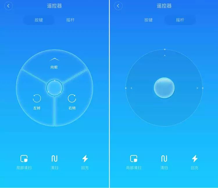去年扫地机器人只有开/关机、回充两个按钮,当时的回充包含局部清扫功能,今年将局部清扫按钮独立出来,让人更方便清扫指定区域。