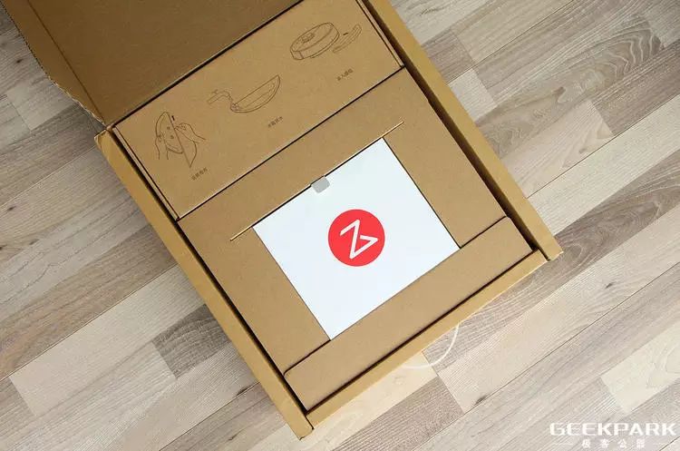 打开包装盒有两个盒子,这和去年有所不同,因为除主机和充电座之外,上面多出来的盒子是这次主角中的主角——水箱,这一部分包含了扫地机器人拖地的秘密,我们接着往下看。