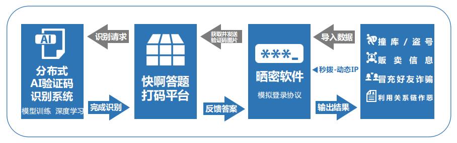 4) 打码平台后台破解验证码,将字符结果返回“晒密”软件,完成“晒密”(撞库)流程。