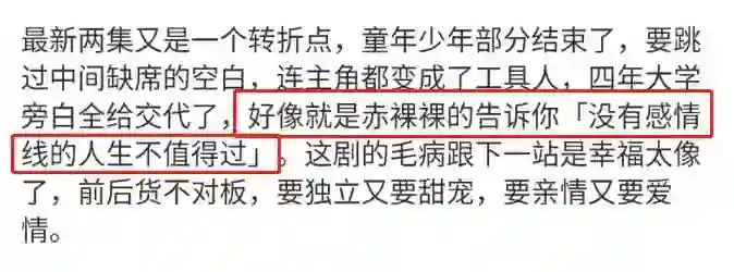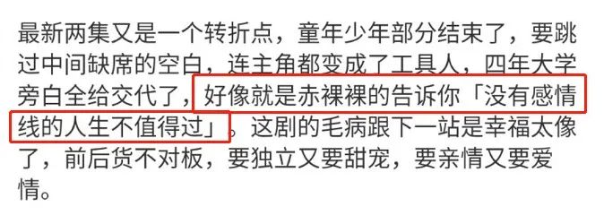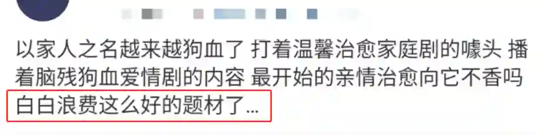 细究下来,网友们惋惜,也并非是觉得家庭剧题材一定比爱情剧“高贵”。