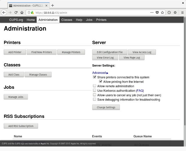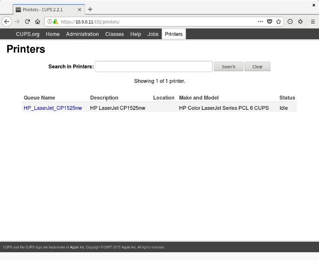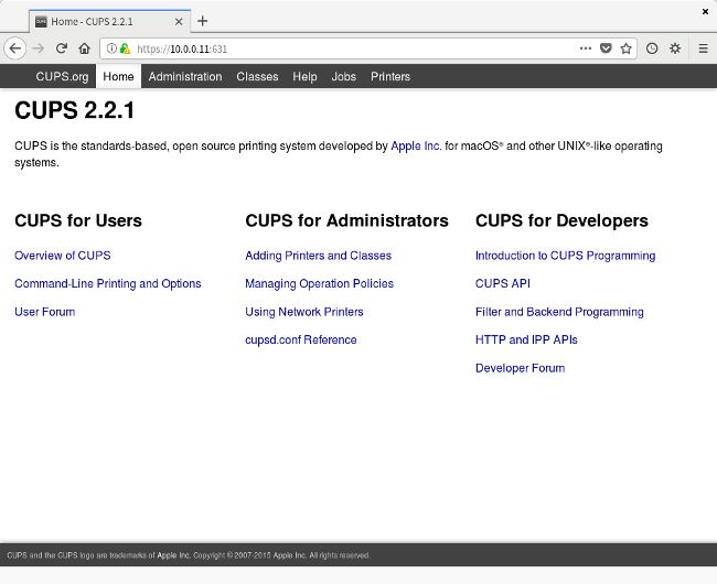 在 CUPS 中设置打印机也是非常简单的,你可以通过一个 Web 界面来完成。CUPS 监听端口是 631,因此你用常用的浏览器来访问这个地址:
