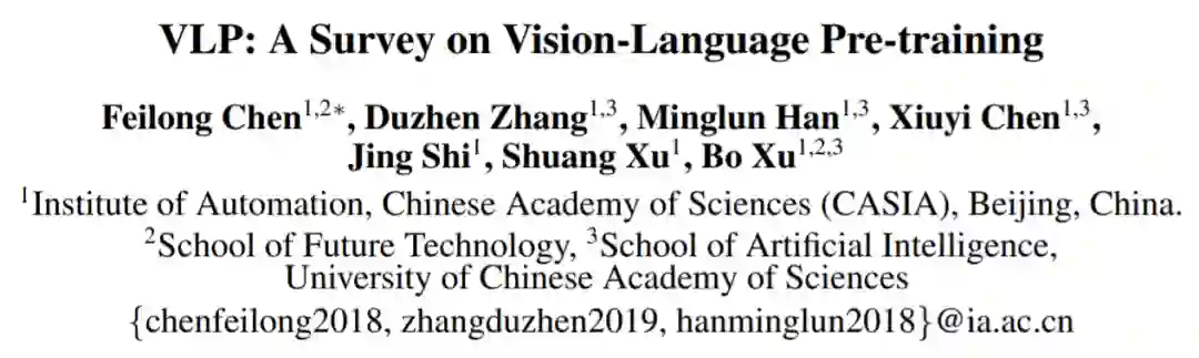 调查了视觉 - 语言预训练(vision-language pre-training,VLP)最新进展和新领域,包括图像 - 文本预训练和视频 - 文本预训练