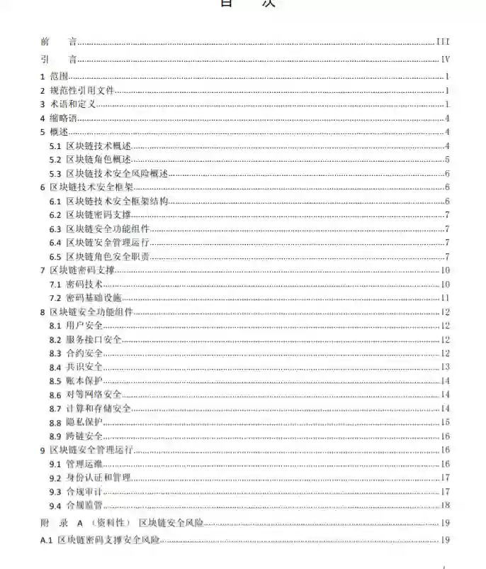 本标准针对区块链的安全架构,从密码技术、基础设施、应用层、合约层、共识层、网络层、数据层、隐私保护、跨链操作和管理运维对区块链系统或网络规定了应满足的安全要求,适用于政府部门、企事业单位使用区块链服务时参考,也适用于区块链服务供应商按照合适的安全要求开发区块链系统,进行系统部署和维护。本标准主要技术内容:从区块链面临的安全风险入手,设计以密码安全保障技术为支撑的区块链安全架构,将区块链系统划分为不同的层级,针对各个层级设计区块链安全体系,从技术和管理的角度提出安全规范,包括基本要求和增强要求。本项目适应于政府部门、企事业单位使用区块链服务时参考,也适应于区块链服务供应商按照合适的安全要求开发区块链系统,进行系统部署和维护。