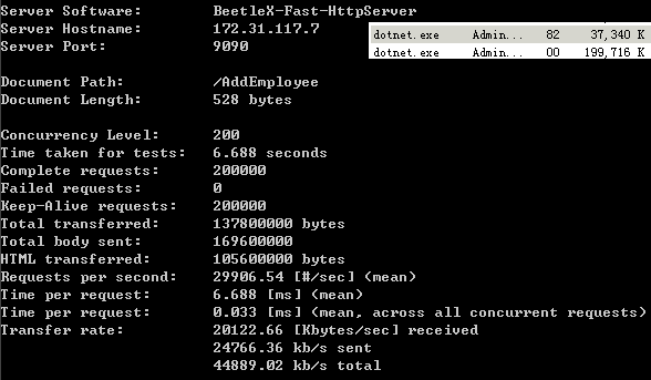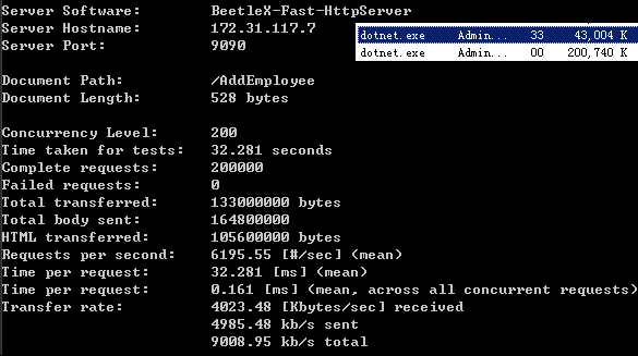 是dotNet core下基于Beetlex实现的一个高度精简化和高吞吐的HTTP API服务开源组件,它并没有完全实现HTTP SERVER的所有功能,而是只实现了在APP和WEB中提供数据服务最常用两个指令GET/SET,满足在应用实现JSON,PROTOBUF和MSGPACK等基于HTTP的数据交互功能,虽然是一个精简版本但针对SSL这方面的安全性还是支持。