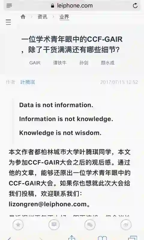CCF-GAIR 2017 已经圆满结束,点击阅读原文,回顾大会精彩演讲 。