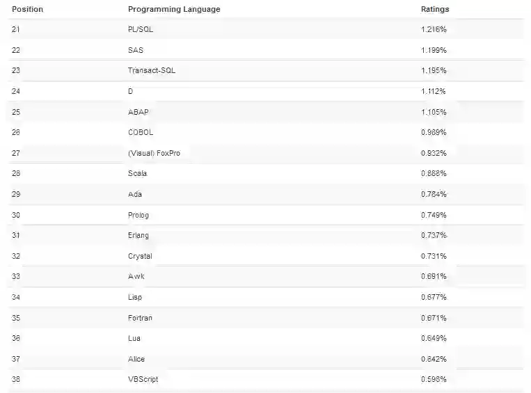 这个排行榜可以用来考查你的编程技能是否与时俱进,也可以在开发新系统时作为一个语言选择依据。