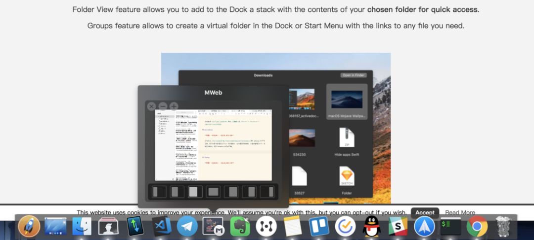 顾名思义,ActiveDock 是一款 Dock 栏增强工具。它可以帮助你自定义 Dock 的外观样式,生成窗口实时预览,快速调整窗口尺寸,分组整理图标,模拟 Windows 开始菜单等。应用预置了数十种 Dock 栏主题,同时也支持自定义外观,功能较为丰富。