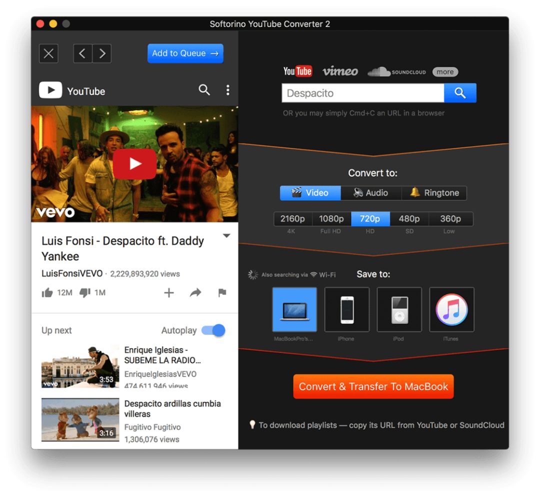 SYC 2 与 Waltr 2 同为 Softorino 出品,可以帮助你将 YouTube 等流媒体网站音视频直接下载至 iPhone 和 iPad 中。其操作体验与 Waltr 2 类似,只需要直接键入链接,静待下载传输完毕即可。需要注意的是,尽管已经支持 Vimeo 等超过 60 个流媒体源,但 SYC 2 尚未适配优酷、爱奇艺等国内视频网站,请明确自己的需求后购买。