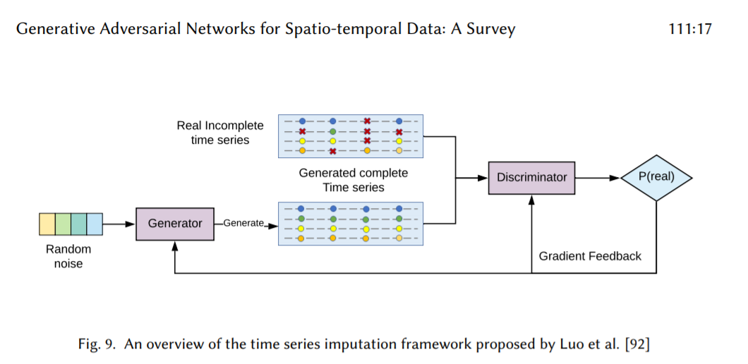 然而,上述工作回顾了ST数据建模问题或GANs在计算机视觉领域的最新进展。尽管许多研究者(saxena2019d;esteban2017real;gupta2018social;luo20192;已经用GANs对ST数据进行建模,在这个领域还没有相关的调查来解决在ST数据应用中使用GANs的潜力。本文第一次全面概述了ST数据中的GANs,描述了GANs有希望的应用,并确定了在不同ST相关任务中成功应用尚需解决的一些挑战。