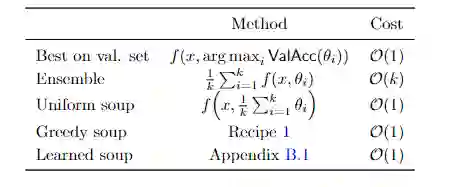 而模型汤通过对模型权重进行平均,最后得到的是一个模型,则可以在不产生任何额外推理或内存成本的情况下提升性能。