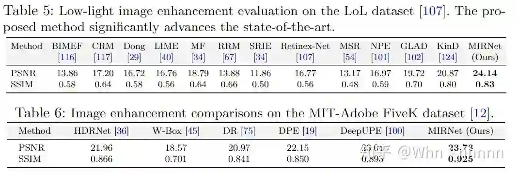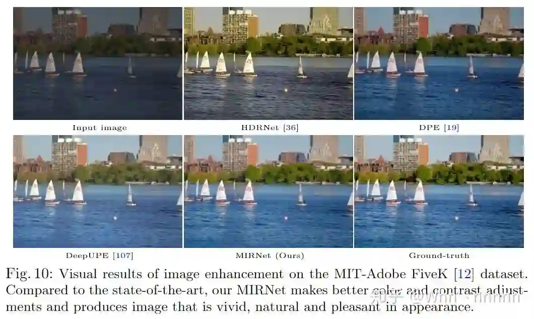 对于图像增强,我了解的就要更少一点了,所以还是仅就文中的实验数据和视觉效果来看,MIRNet的效果不弱于其他SOTA算法。