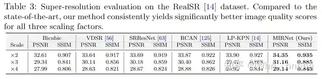 对于SR部分,我了解的方法并不太多,不过从文中的实验对比数据来看,MIRNet的表现还是十分优秀的,因为了解不多,这里就不做过多的评价了。