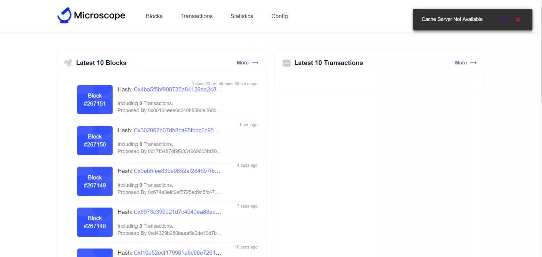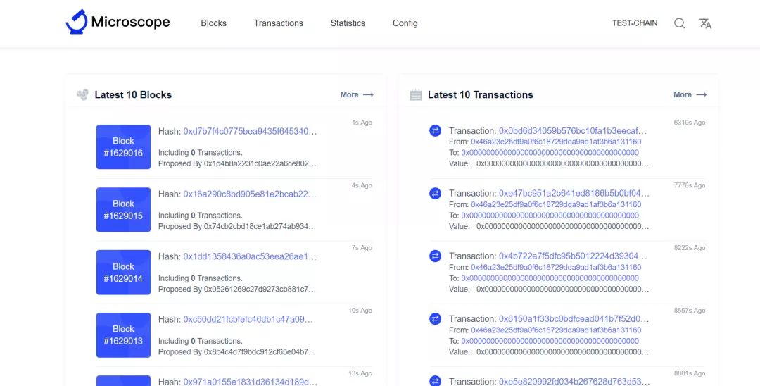 Microscope 是专门为 Nervos AppChain 设计的区块浏览器,使用它可以看到任意给定链的块和交易的详细信息。
