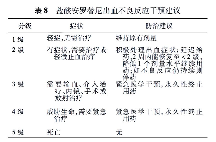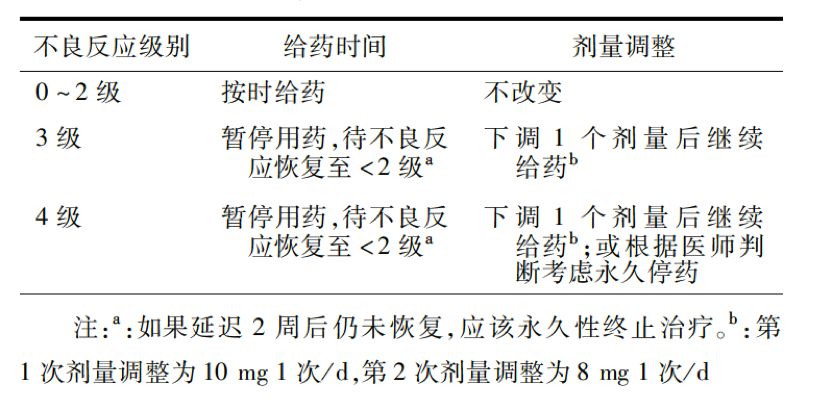 表5. 盐酸安罗替尼不良反应剂量调整一般原则