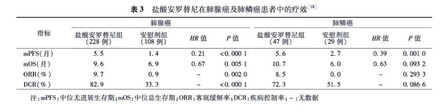 3. 肺腺癌及肺鳞癌患者均可从盐酸安罗替尼的治疗中获益;