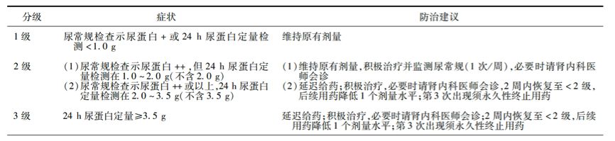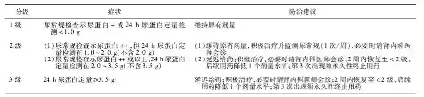 表9. 盐酸安罗替尼蛋白尿不良反应分级及干预建议