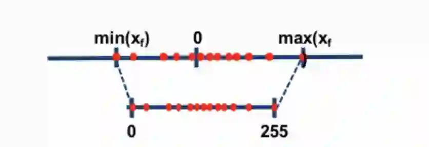 两种最常见的 8-bit 量化技术为 zero-point 量化和 absmax(absolute maximum)量化。这两种方法将浮点值映射为更紧凑的 int8(1 字节)值。