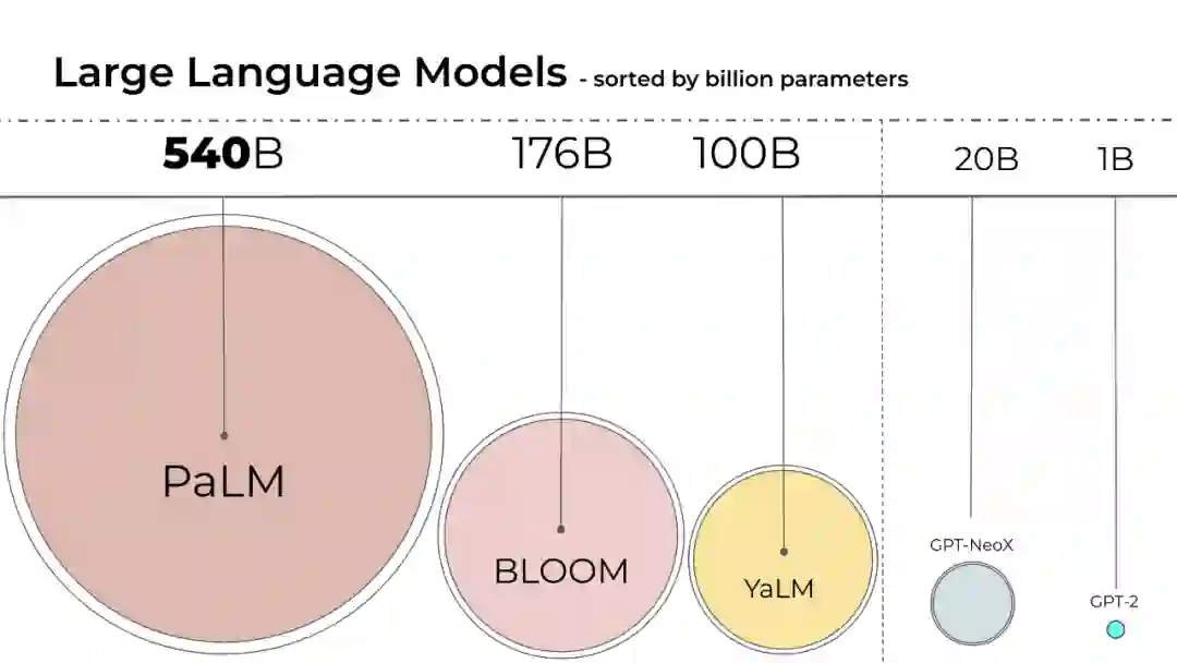 语言模型的规模一直在变大,PaLM 有 540B 参数,OPT、GPT-3 和 BLOOM 有大约 176B 参数,模型还在朝着更大的方向发展。