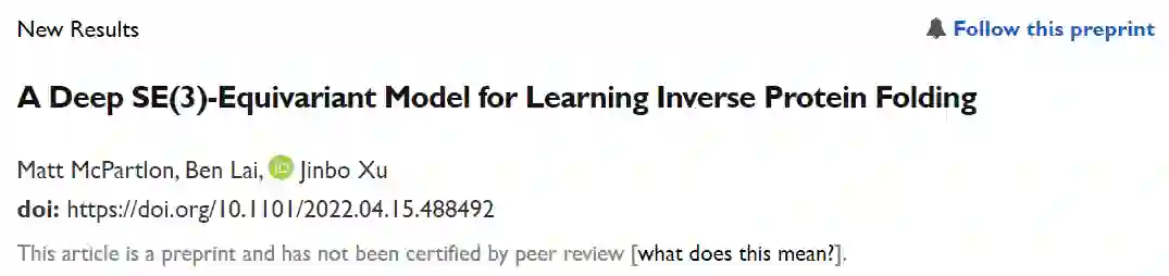 该研究以「A Deep SE(3)-Equivariant Model for Learning Inverse Protein Folding」为题,于 2022 年 4 月 15 日发布在 bioRxiv 预印平台。