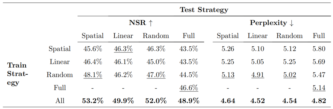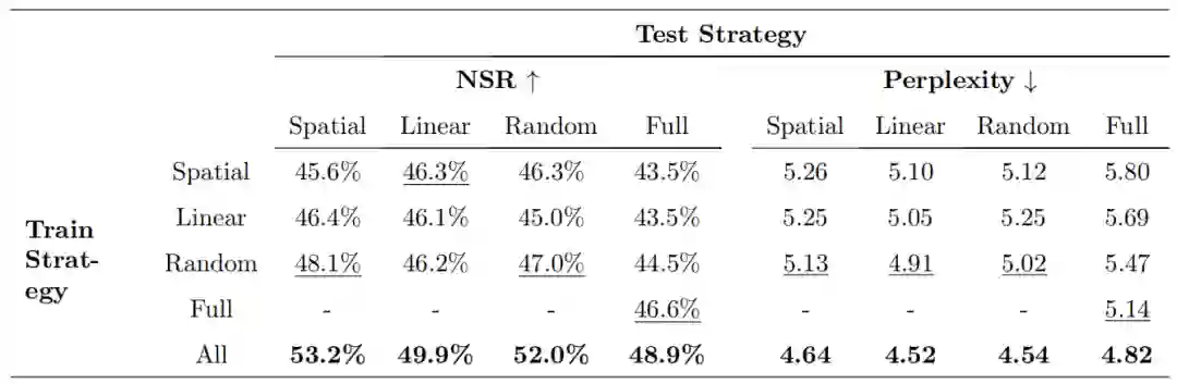 研究人员评估了五种不同的残基掩蔽技术(Spatial、Linear、Random、Full 和 All)的性能。
